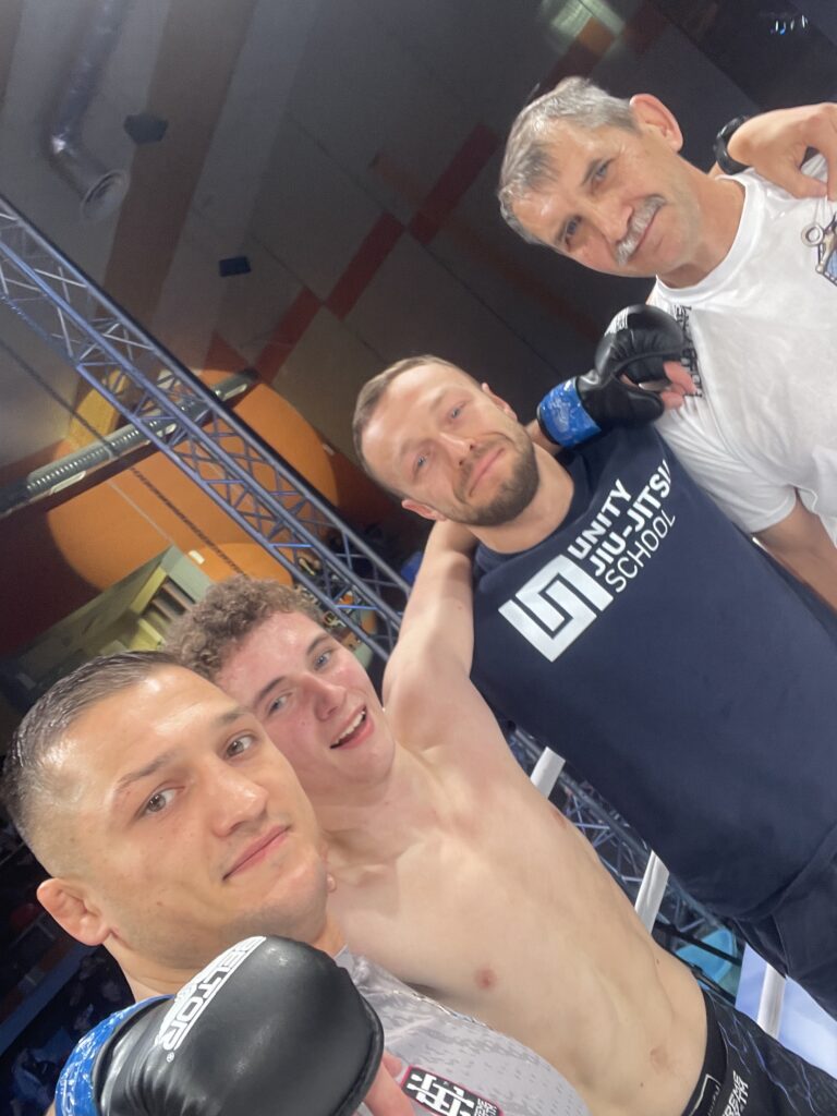 W narożniku Adama nie zabrakło kluczowego wsparcia – trenerzy Sebastian Kotwica, Sergey Savenko oraz Krzysztof Flak z Unity Jiu-Jitsu Kraków byli obecni zarówno pod względem merytorycznym, jak i mentalnym, pomagając mu przygotować się do debiutu i wspierając na każdym etapie walki. Ich doświadczenie i wskazówki okazały się nieocenione, a sam Adam podkreślał, że wsparcie zespołu było kluczowe dla sukcesu.